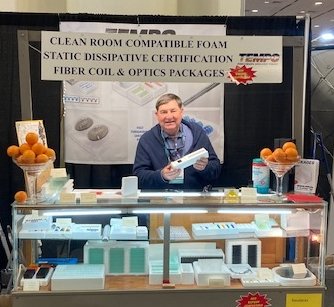Doug Rogers exhibits at laser shows like Photonics West featuring static dissipative wafer boxes and intricate insert-molded components.