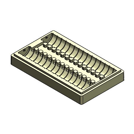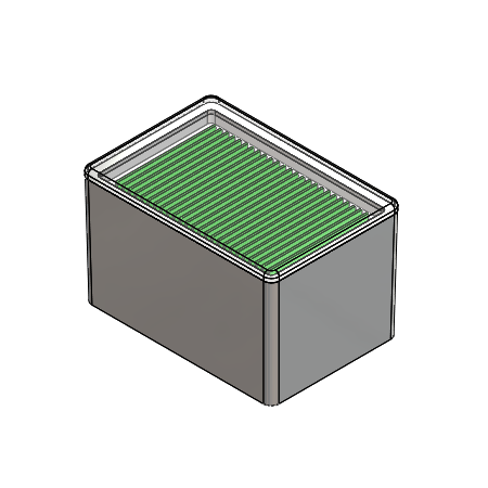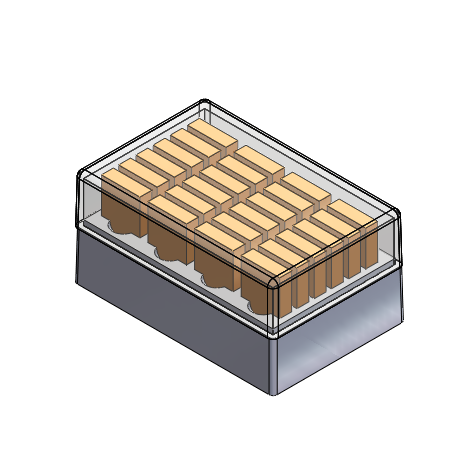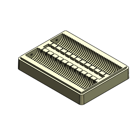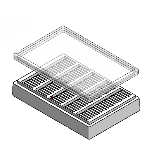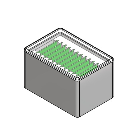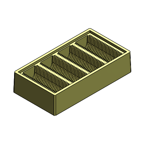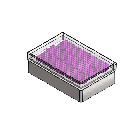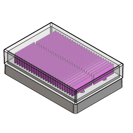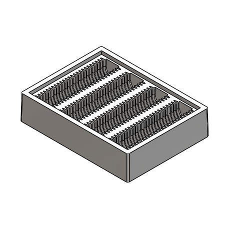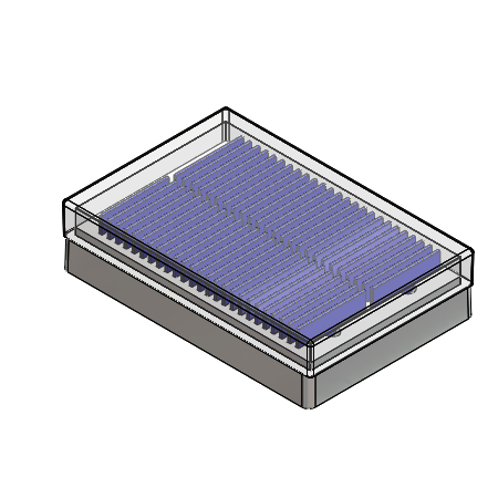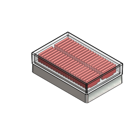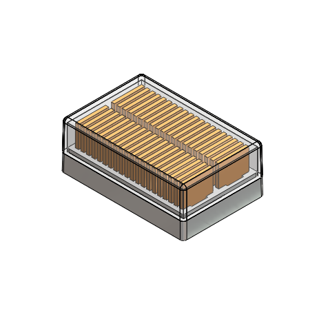 3.4" x 1.6" x .440" | 3.4" x 1.6" x .440" | 86.36mm x 40.64mm x 11.18mm | SC60 | Static dissipative tray for 3.4” parts. Use reversible top for full enclosure. |