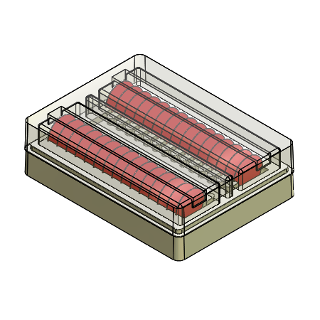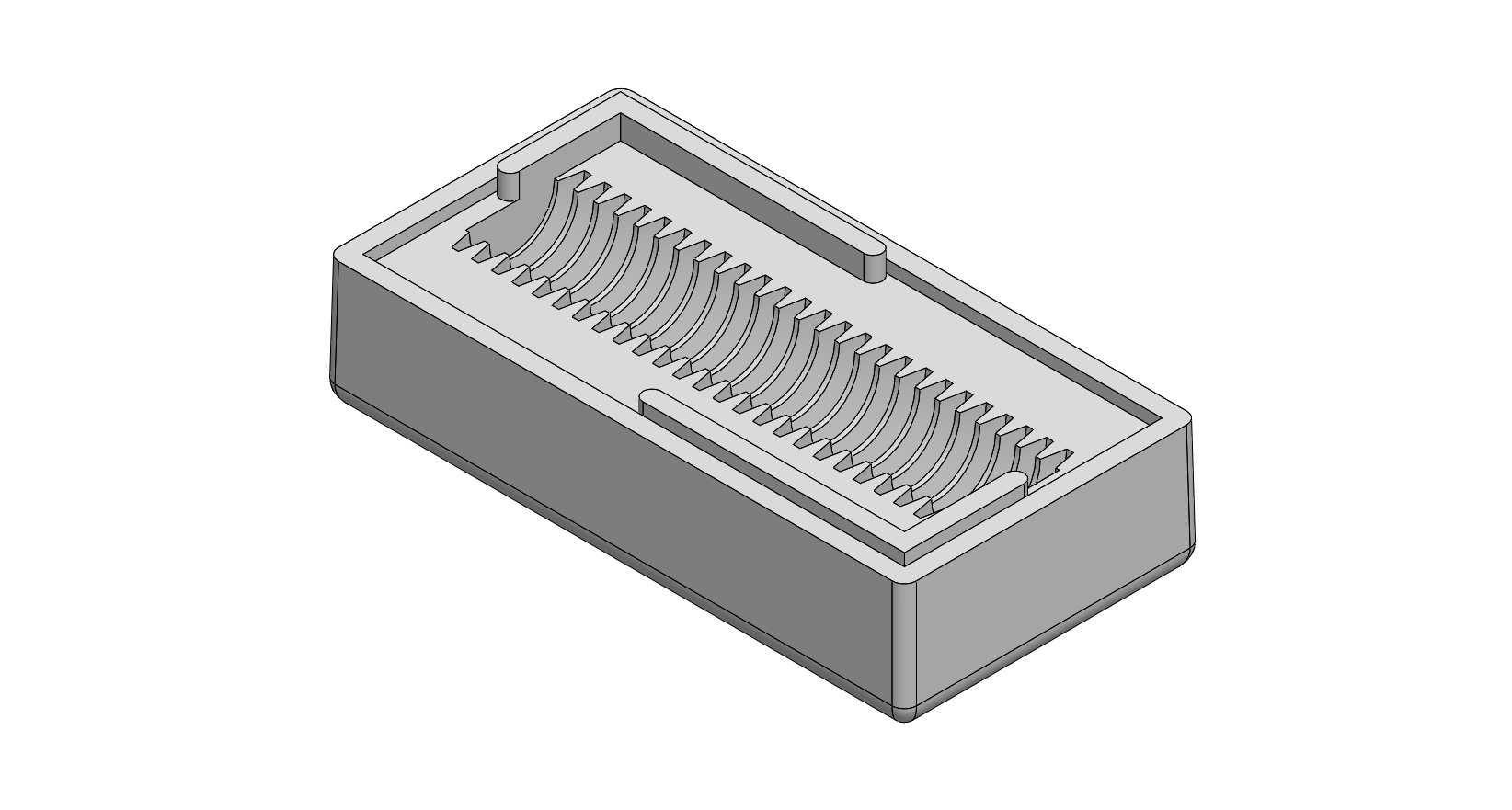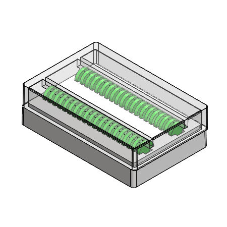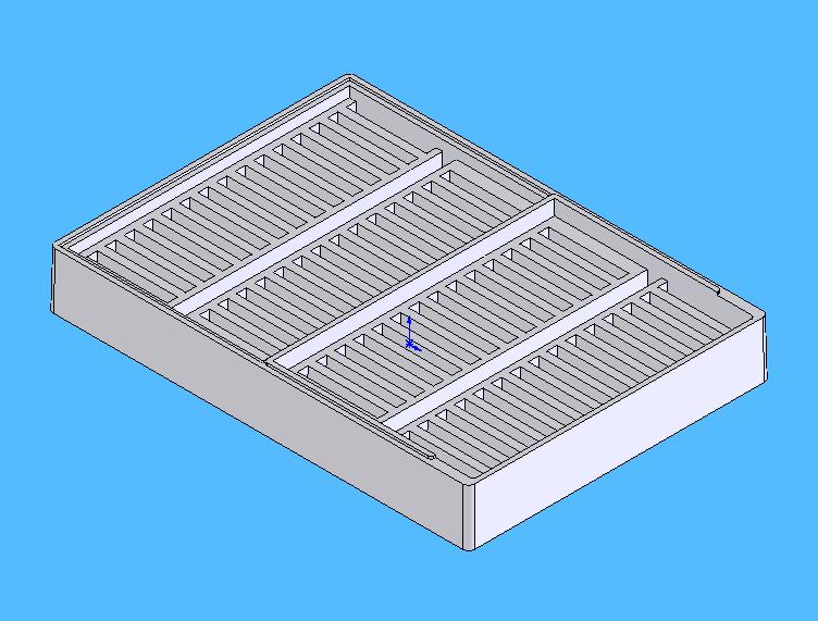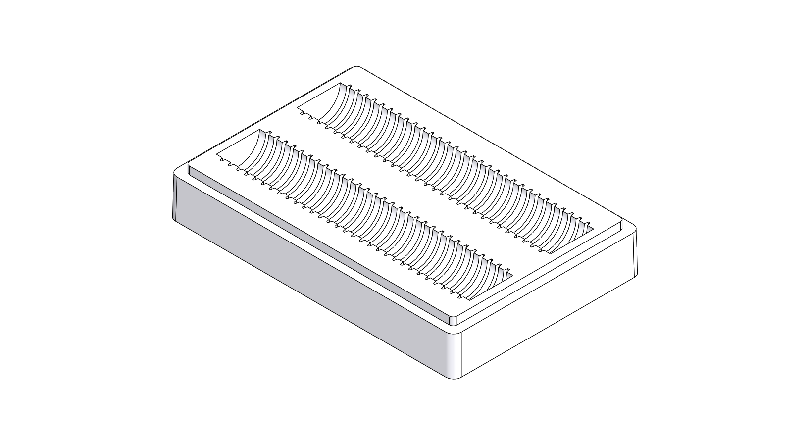 3.4" x 1.6" x .440" | 3.4" x 1.6" x .440" | 86.36mm x 40.64mm x 11.18mm | SC60 | Static dissipative tray for 3.4” parts. Use reversible top for full enclosure. |