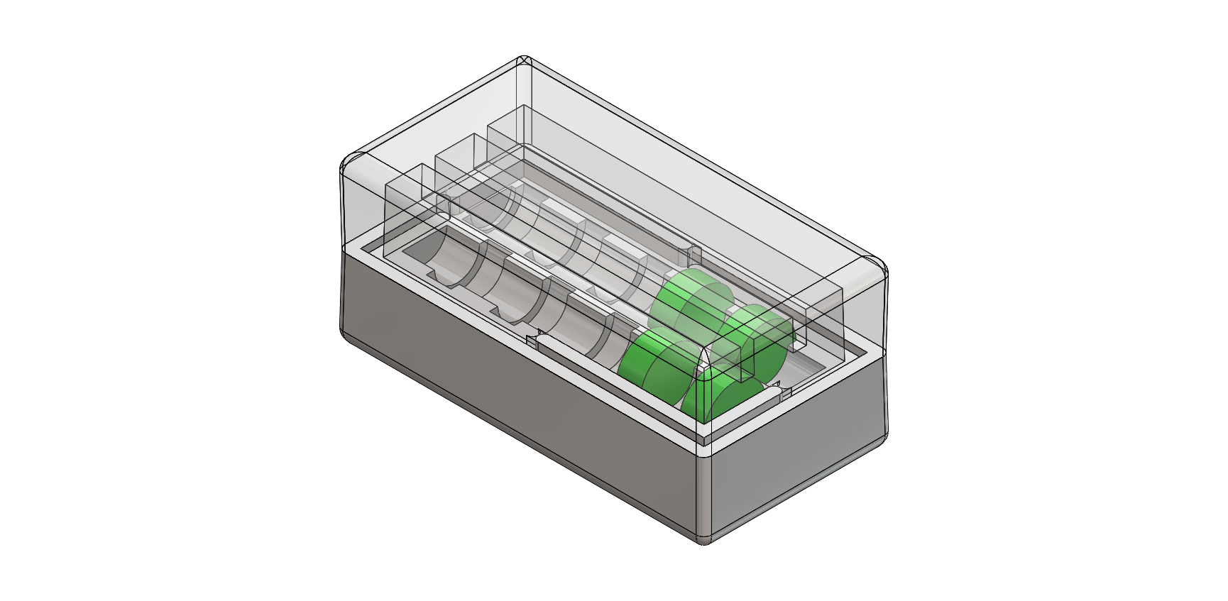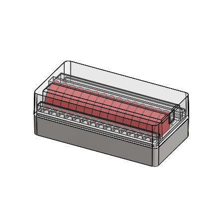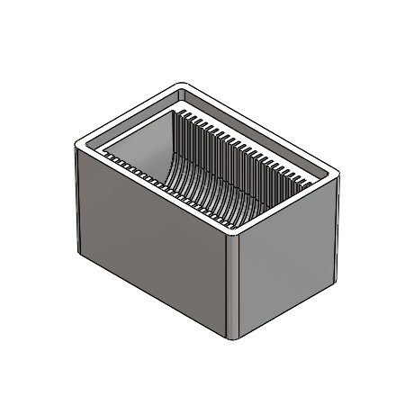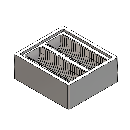 .5" OD or Square with Ribbed Lid | .5" OD x .080" | 12.7mm x 2mm | 100R-937 | This 100 count box is Static Dissipative. It will hold parts .5” OD x .080” thick, with the long ribbed lid shown on the right side of the cross section image below. Using a flat lid, you can hold parts up to .937” OD. By using ribbed lids, you can hold a range of parts, including small square parts. See examples shown in Image #1. Call for samples and assistance. |