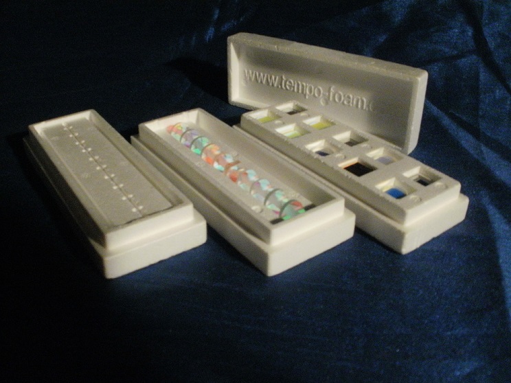 | 1.0"OD .051 Thick | 1.0"OD x .051" | 25.4mm OD x 1.3 mm | #30R-1000 | Static dissipative 30 count pack for 1.0” OD glass. This reversible box can be customized by changing the mold insert creating package interior, You only pay for the mold insert to meet your exact requirsment. |