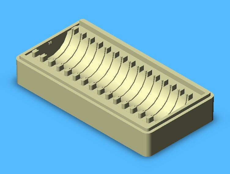 .688" OD or Square with Ribbed Lid | .688" x .080" | 17.5mm x 2mm | 100R-937 | This 100 count box is Static Dissipative. It will hold parts .688” OD x .080” thick, with the long ribbed lid shown on the right side of the cross section image below. Using a flat lid, you can hold parts up to .937” OD. By using ribbed lids, you can hold a range of parts, including small square parts. See examples shown in Image #2. Call for samples and assistance. |