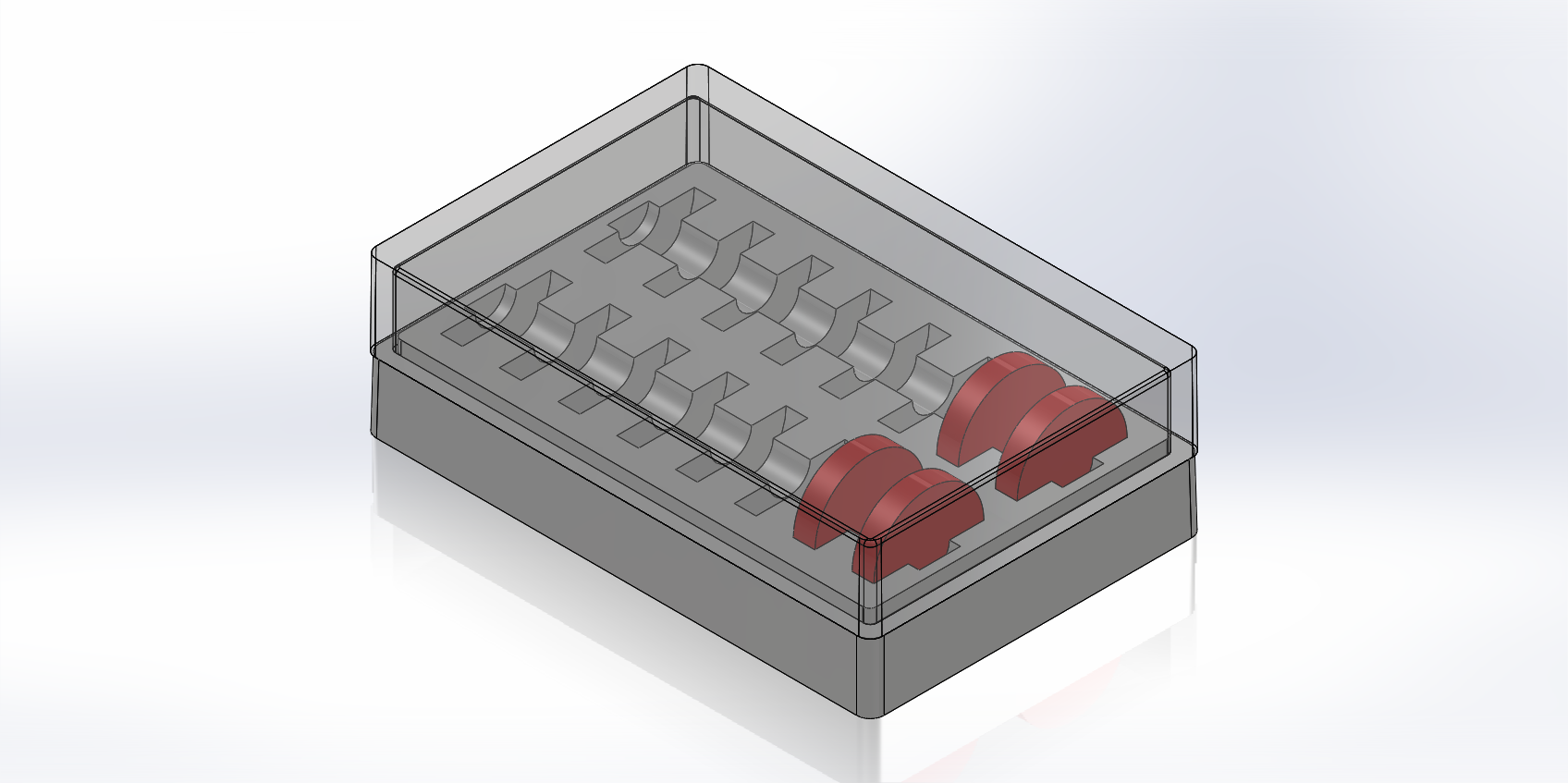 1.5" OD | 1.5" OD x .080" | 38mm OD x 2mm | 25R-1562 | Static dissipative 25 count pack for 1.5” OD glass. This reversible box can be customized by changing the mold insert creating package interior, see examples shown in Image #1. |