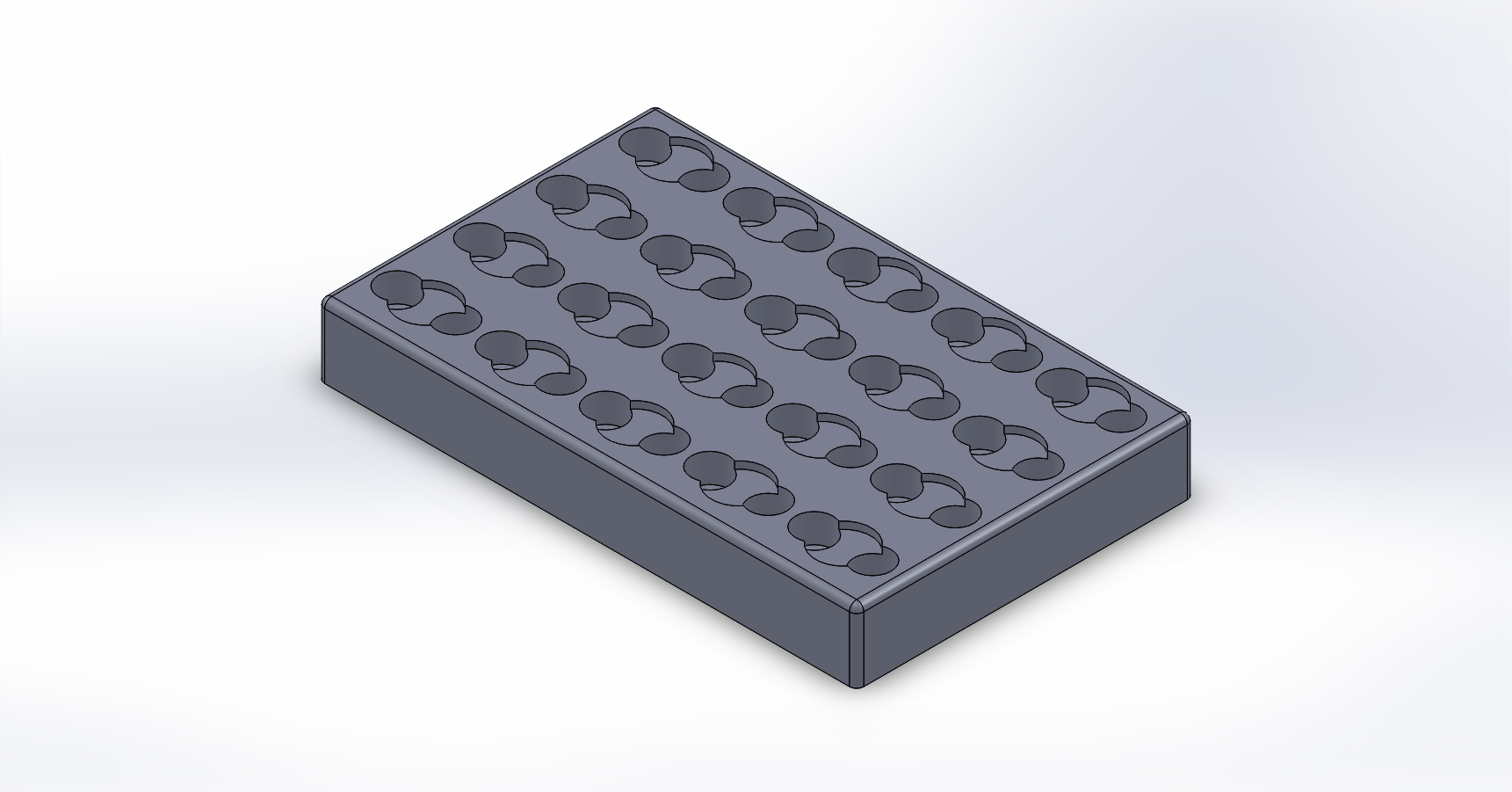 | 1.2 OD x 0.2 | 1.2" OD x 0.2" deep | 30mm OD x 5mm deep | 20R-1200 | Static dissipative 20 count handling tray for 1.2” OD x 0.2” round parts. |