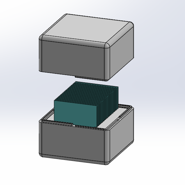 | 1.5" x 1.5" x .118" | 1.5" x 1.5" x .118" | 38mm x 38mm x 3mm | #111 | This 75 count box is Static Dissipative. By using #102 FLAT LID, this box will hold parts 1.5” long x 1.5” wide x .118” thick. Call for samples and assistance. |