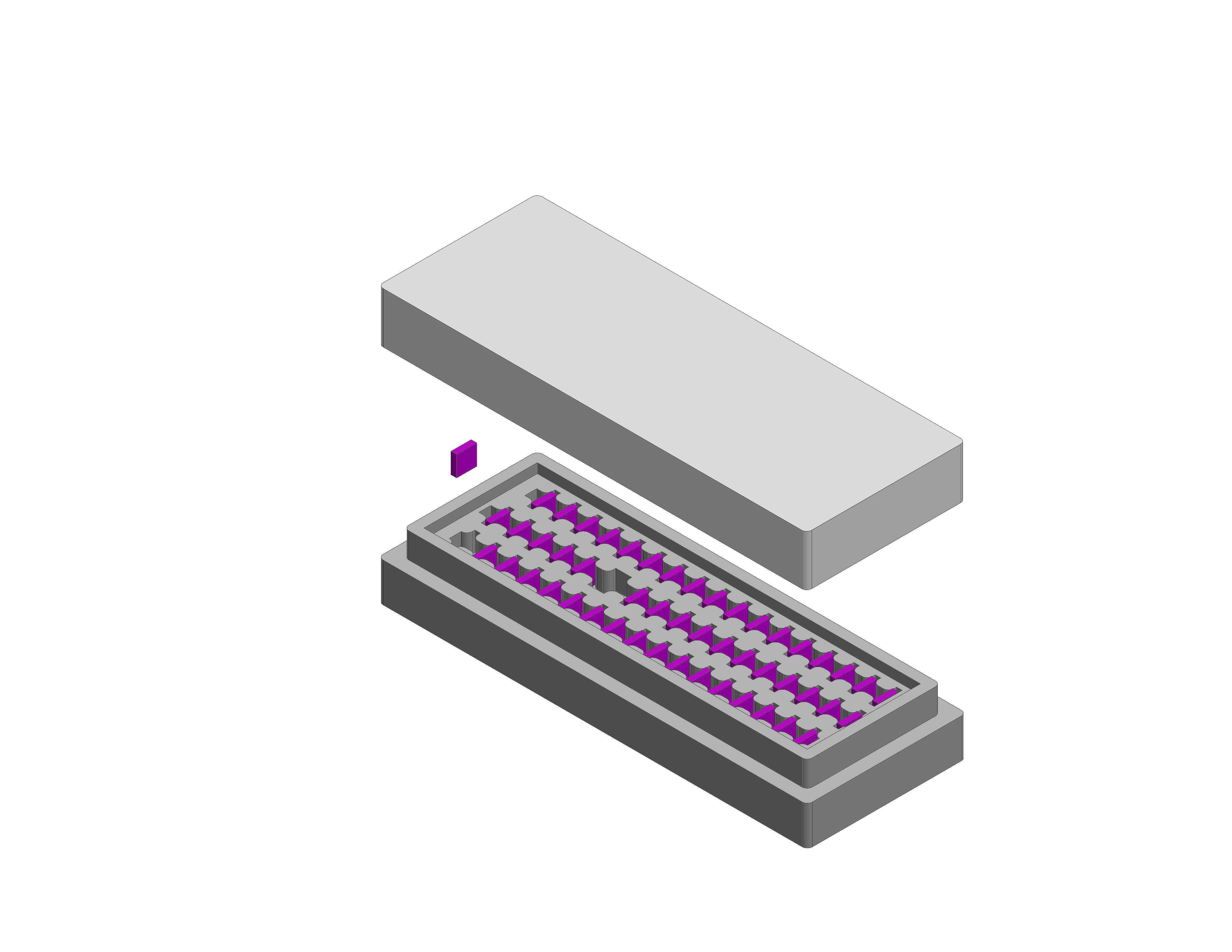 | 2.625" x 2.0" x .161" | 2.625" x 2.0" x .161" | 66.67 x 51 x 4.1mm | #56S-2062 | This 56 count box is Static Dissipative. By using #102 FLAT LID, this box will hold parts 2.0” long x 1.0” wide x .161” thick. Call for samples and assistance. |