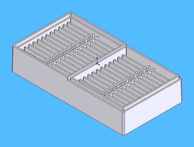 | 2.875" x 2.23" x .25" | 2.875" x 2.23" x .25" | 73.02 x 56.64 x 6.35mm | #40S-2250 | This 40 count box is Static Dissipative. By using #102 FLAT LID, this box will hold parts 2.23” long x 1.25” wide x .25” thick. Call for samples and assistance. |